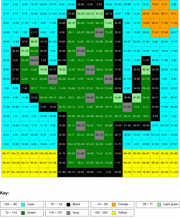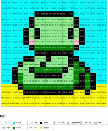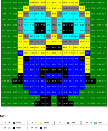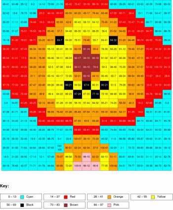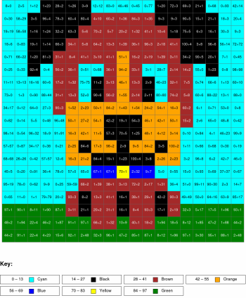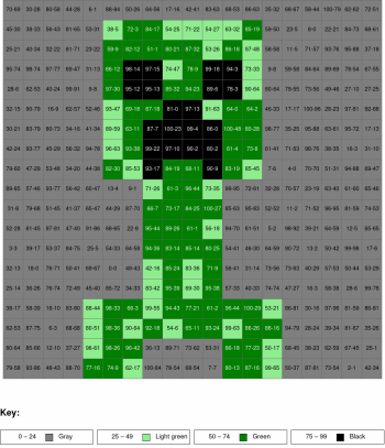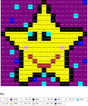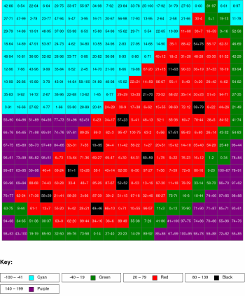 Subtraction, arguments from 0 to 100, results from 0