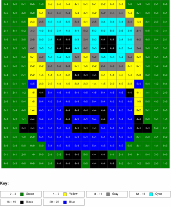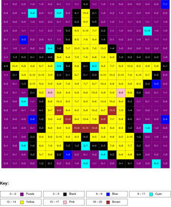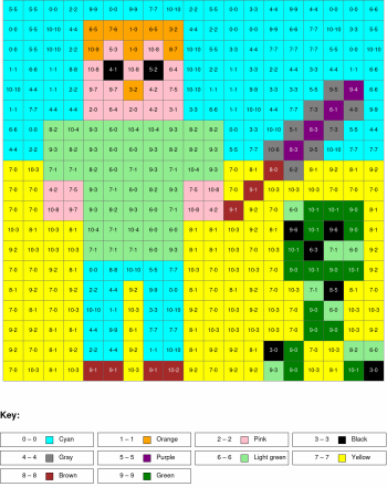 Subtraction, arguments from 0 to 10, results from 0