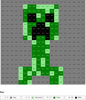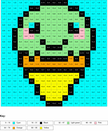 Addition and subtraction, arguments from 0 to 10, results from 0